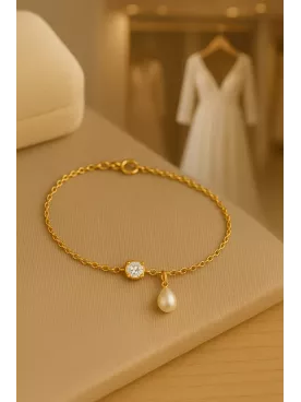 Iguazú - Bracelet mariée Cabochon Cristal & Goutte Nacrée, Mariage Romantique