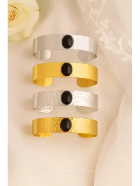 Bracelet Martelé Doré ou Argenté avec Cabochon Ovale en Onyx noir – Élégance et Douceur – 12x170 mm, Pierre 10x8 mm