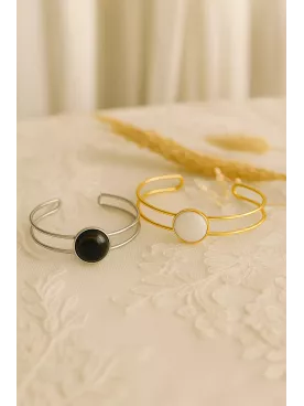 Orné de pierres gemmes Onyx noir, ce bijou se distingue par sa profondeur élégante et son éclat mystérieux, symboles de force intérieure, de protection et de confiance en soi.Avec sa longueur de 15 cm et sa forme ouverte, ce bracelet s’ajuste parfaitement à votre poignet, apportant une touche de sophistication et de caractère à votre tenue.