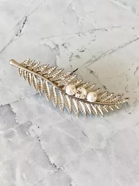 Pince crocodile en métal doré ou argenté, en forme de feuille ondulée. Elle sublime la coiffure avec élégance, pour un look bohème, naturel ou champêtre. Facile à fixer, elle maintient les cheveux sans les abîmer ni glisser. Un accessoire raffiné à porter le jour J… et au quotidien.