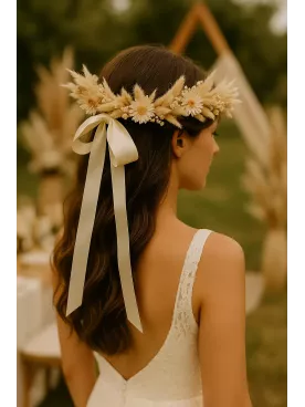 Nature - Couronne de Fleurs Séchées – Couronne Bohème Naturelle pour Mariée ou Invitées