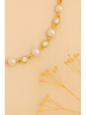 Ce headband au style classique et raffiné se compose de perles nacrées de différentes tailles et de cristaux de Swarovski cubiques, minutieusement montés sur une fine chaîne.