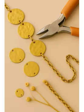 Composé de pastilles dorées martelées finement reliées par une chaîne délicate, il capte la lumière à chaque mouvement et illumine la chevelure avec élégance.Ce bijou de tête au charme solaire et bohème sublime aussi bien les coiffures lâchées aux ondulations naturelles que les chignons flous ou tresses romantiques. Léger et confortable, il se porte toute la journée sans contrainte, tout en ajoutant une touche d’éclat doré et raffiné à votre look de mariée.