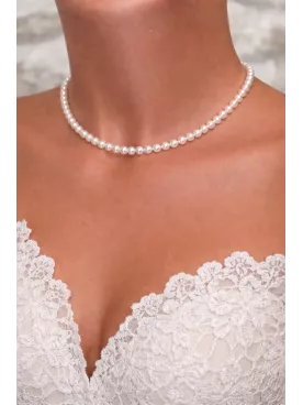 Le collier Clara est un ras-du-cou intemporel composé de perles nacrées Swarovski. Classique et délicat, il sublime un bustier ou une robe décolletée avec une élégance naturelle.