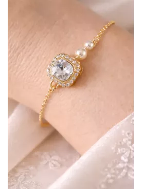 Le bracelet Golden Square allie finesse et éclat pour sublimer la mariée avec élégance.