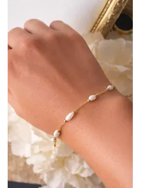 Ce bracelet délicat est sublimé par de véritables perles d’eau douce naturelles, sélectionnées pour leurs formes légèrement irrégulières qui rendent chaque pièce unique.