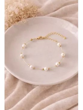 Bracelet Mariée Perle Nacrée – Chaîne Fine Dorée Ajustable
