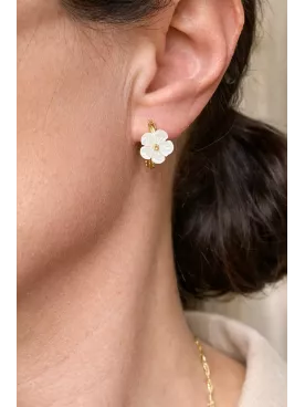 Leur anneau rond torsadé de 17 mm offre une ligne élégante et moderne, tandis que la fleur en nacre de 10 mm, finement sculptée, diffuse un éclat doux et naturel.