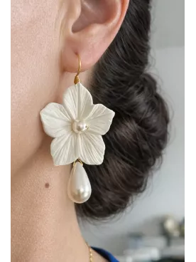 Boucles d’oreilles fleurs et perles nacrées gouttes