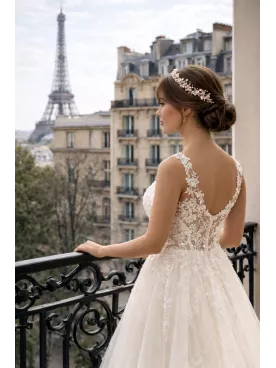Un ensemble poétique et lumineux, idéal pour sublimer votre coiffure de mariage avec douceur et modernité.