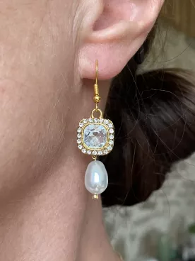 Les perles nacrées Swarovski apporte une touche de douceur et de romantisme, tandis que les connecteurs carrés en oxyde de zirconium et en laiton doré enrichissent le bijou d’une lumière subtile.